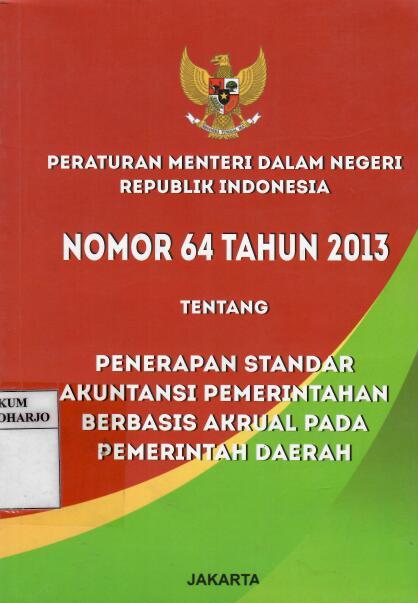 | Judul | : | Peraturan Menteri Dalam Negeri Republik Indonesia Nomor 64 Tahun 2013 tentang Penerapan Standar Akuntansi Pemerintahan Berbasis Akrual pada Pemerintah Daerah |