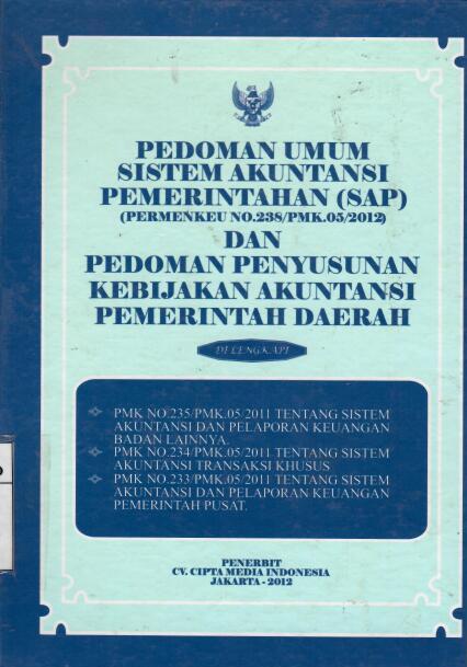 | Judul | : | Pedoman Umum Sistem Akuntansi Pemerintahan (SAP) (PERMENKEU NO.238/PMK.05/2012) dan Pedoman Penyusunan Kebijakan Akuntansi Pemerintah Daerah |