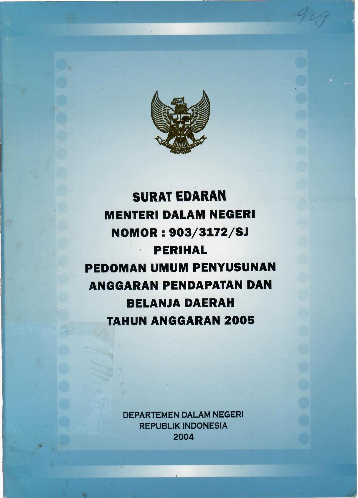 Surat Edaran Menteri Dalam Negeri Nomor : 903/3172/SJ Perihal Pedoman Umum Penyusunan Anggaran Pendapatan Dan Belanja Daerah Tahun Anggran 2005