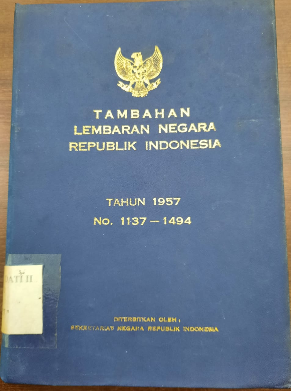 Deskripsi Fisik | : | TAMBAHAN LEMBARAN NEGARA REPUBLIK INDONESIA TAHUN 1957 NO.1132-1494 |