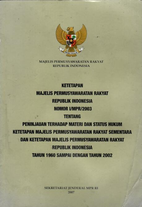 Ketetapan Majelis Permusyawaratan Rakyat RI Nomor I/MPR/2003 tentang Peninjauan Terhadap Materi dan Status Hukum Ketetapan Majelis Permusyawaratan Rakyat Sementara dan Ketetapan Majelis Permusyawaratan Rakyat RI Tahun 1960 sampai dengan Tahun 2002